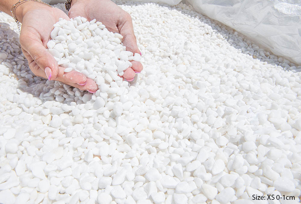 Thassos Pebbles are usually used for decorative purposes, in gardens, landscaping, courtyards, indoors, but even in the roofs of buildings. Producing by raw material Marble White Thasos