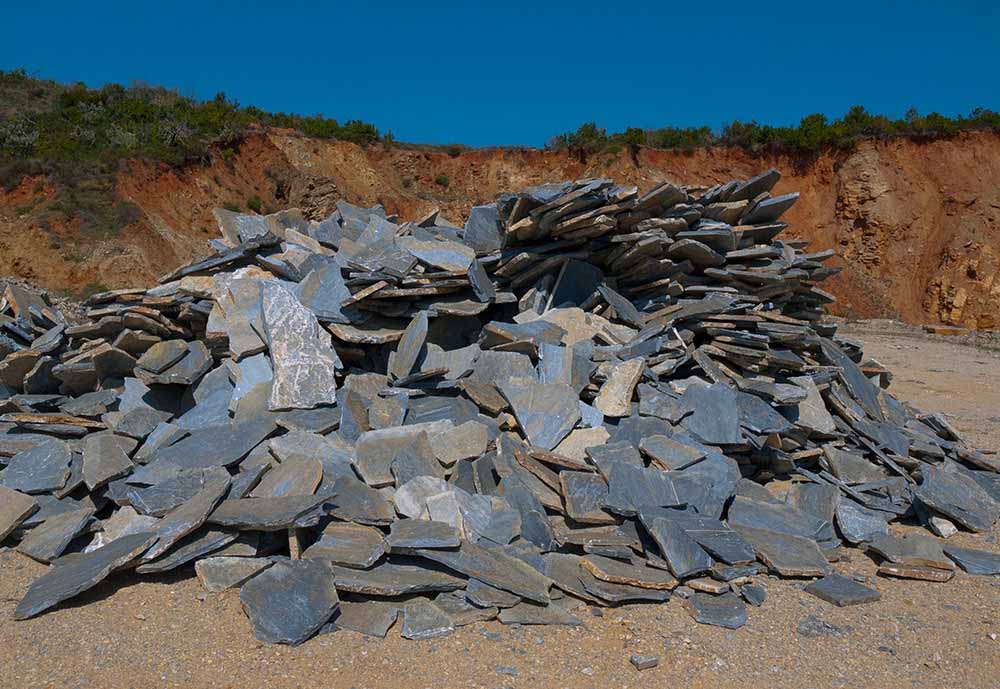 Les dalles de figues irrégulières sont une ardoise calcaire naturelle qui se déchire en fines feuilles après un impact perpendiculaire à leur direction de compression.
