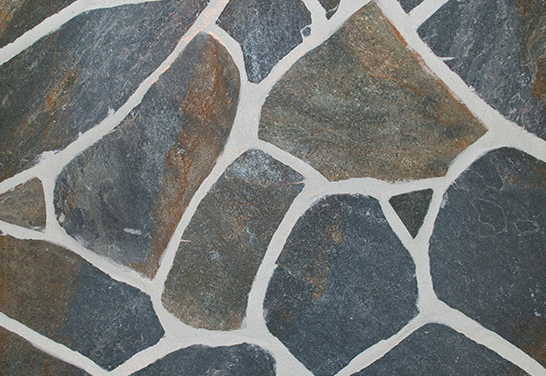Ce sont des dalles naturelles colorées aux nuances de bleu, brun et beige.