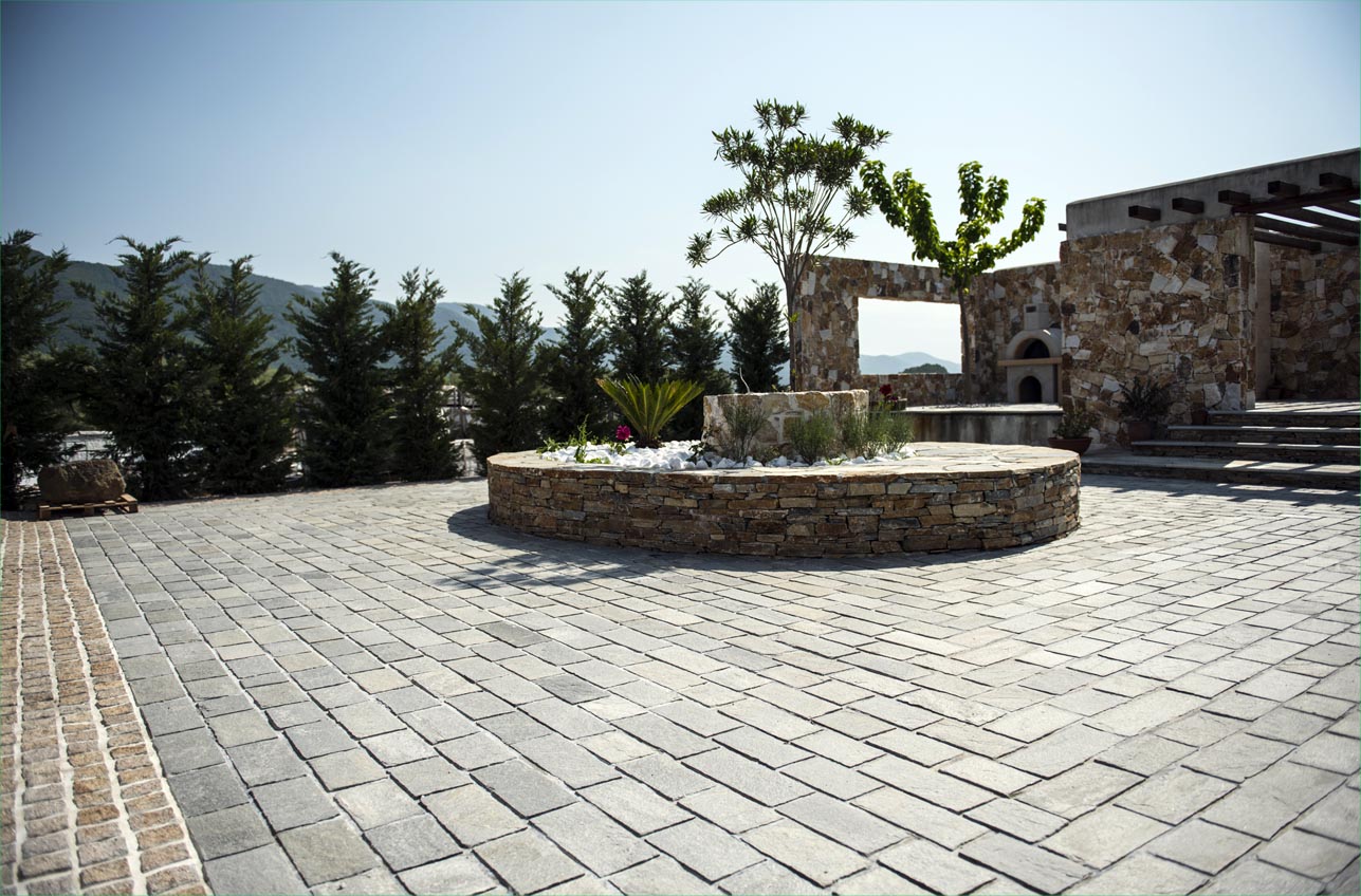 Χρήσεις: επιστρώσεις δαπέδων εξωτερικών χώρων όπως πλατείες, αυλές, πλακοστρώσεις πεζοδρομίων, διάδρομοι, καλντερίμι, λιθόστρωτα, πλακόστρωτα, parking, γκαράζ, πλακοστρώσεις με πέτρινους κυβόλιθους κτλ