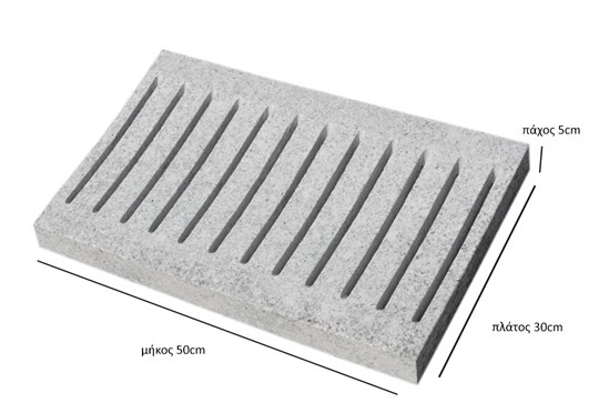 Η πέτρινη Σχάρα Γκρι 30x50x5cm παράγεται από γρανίτη κίτρο. Χρησιμοποιείται σε εξωτερικούς χώρους για την απορροή και διευθέτηση κίνησης υδάτων σε αυλές, πεζοδρόμια, πλατείες, πισίνες κτλ.