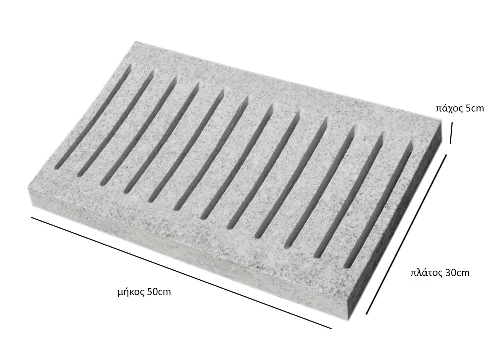 Το προϊόν επίσης διατίθεται στην αγορά και με τις εξής άλλες ονομασίες: γρανιτένια σχάρα γκρι 30x50cm, γρανιτένια αποστραγγιστικά κανάλια 30x50cm, σχάρα γρανίτης γκρι 30x50cm, σχάρα γρανίτης απορροής υδάτων 30x50cm, γρανιτένια σχάρα πισίνας, γρανιτένια σχάρα απορροής υδάτων