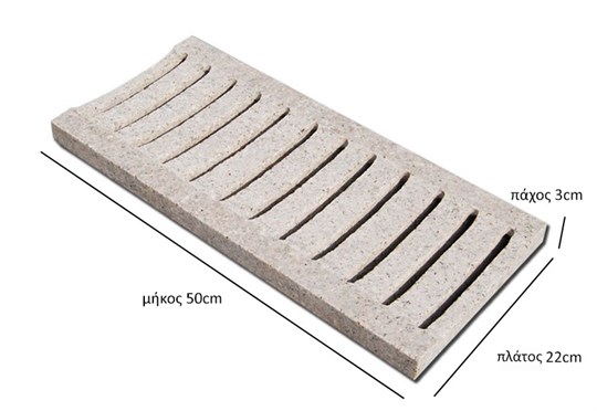 Η πέτρινη Σχάρα Κίτρο 22x50x3cm παράγεται από γρανίτη κίτρο μπεζ. Χρησιμοποιείται σε εξωτερικούς χώρους για την απορροή και διευθέτηση κίνησης υδάτων σε αυλές, πεζοδρόμια, πλατείες, πισίνες κτλ.